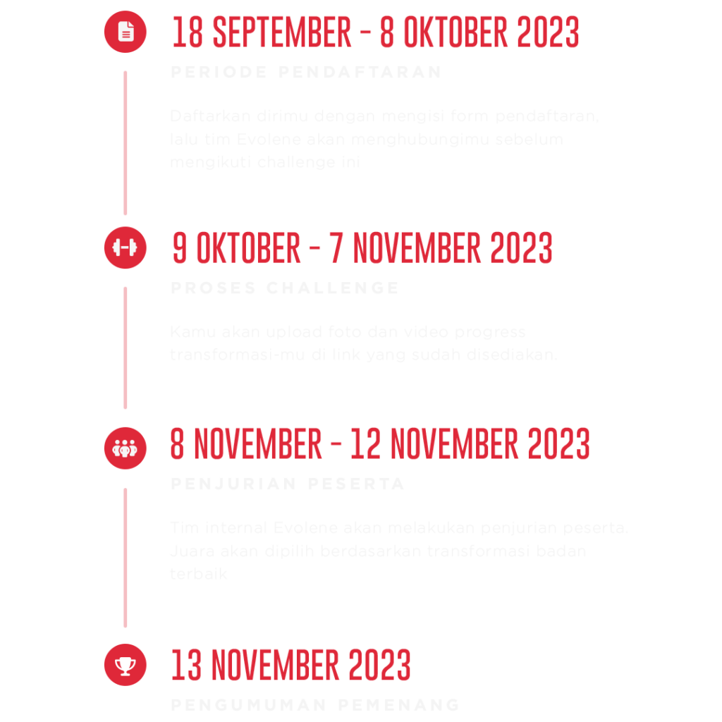 3.  Peserta wajib upload progres transformasi selama 30 hari setiap minggunya bersama produk Evolene pada link yang tim Evolene berikan.